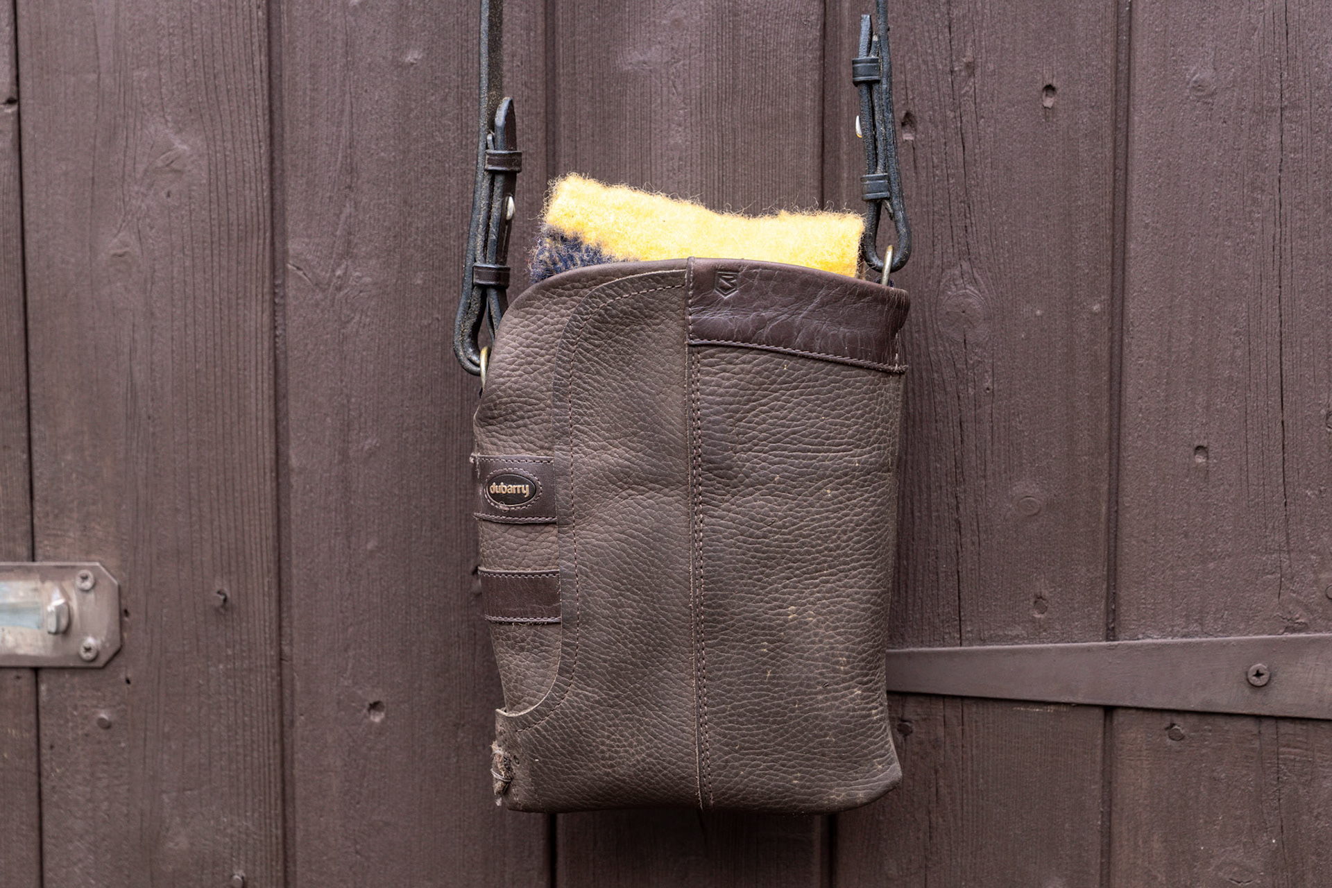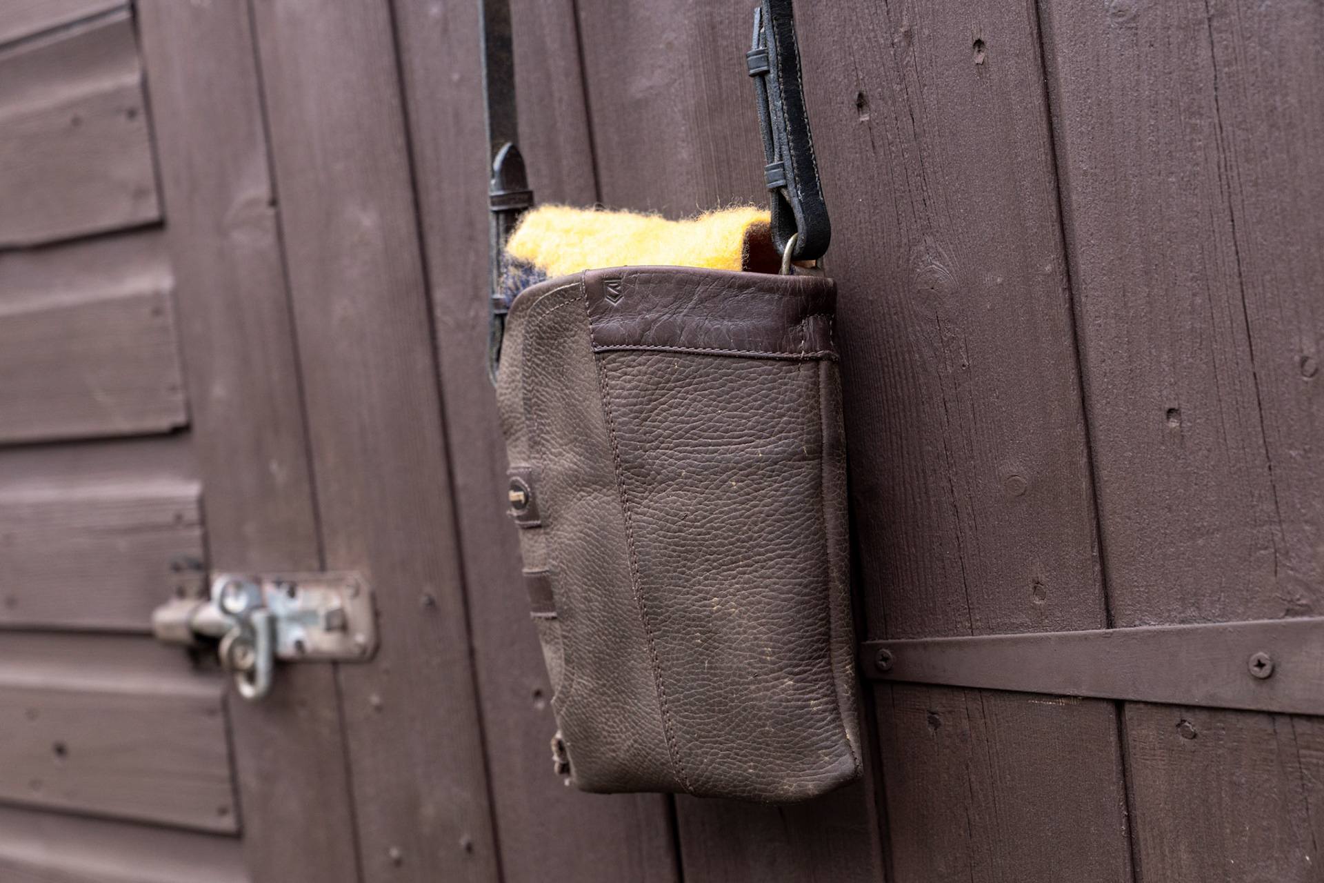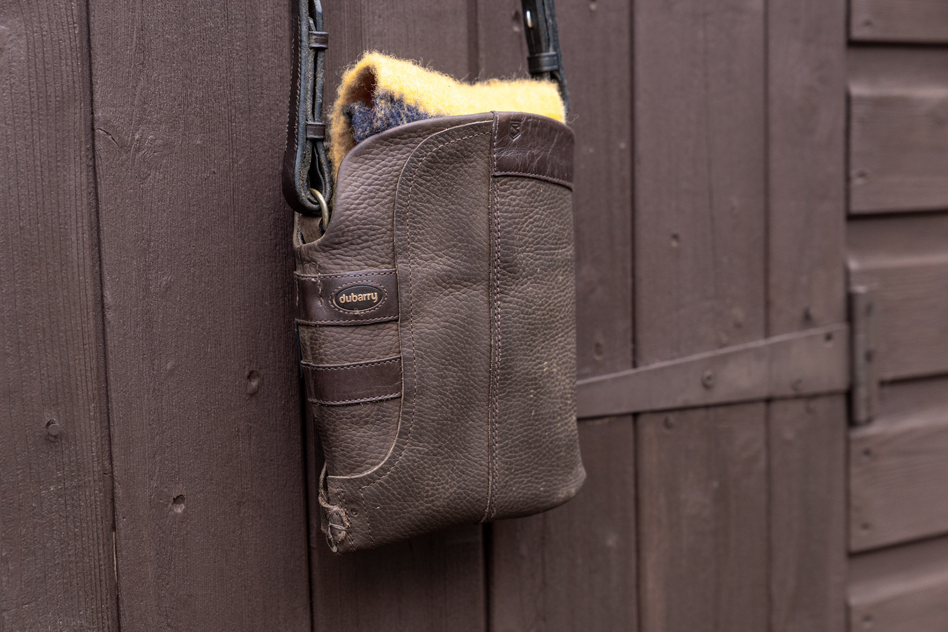 Fabulous Chocolate Brown little boot bag with a rein strap and a pure wool Whitney privacy flap.
