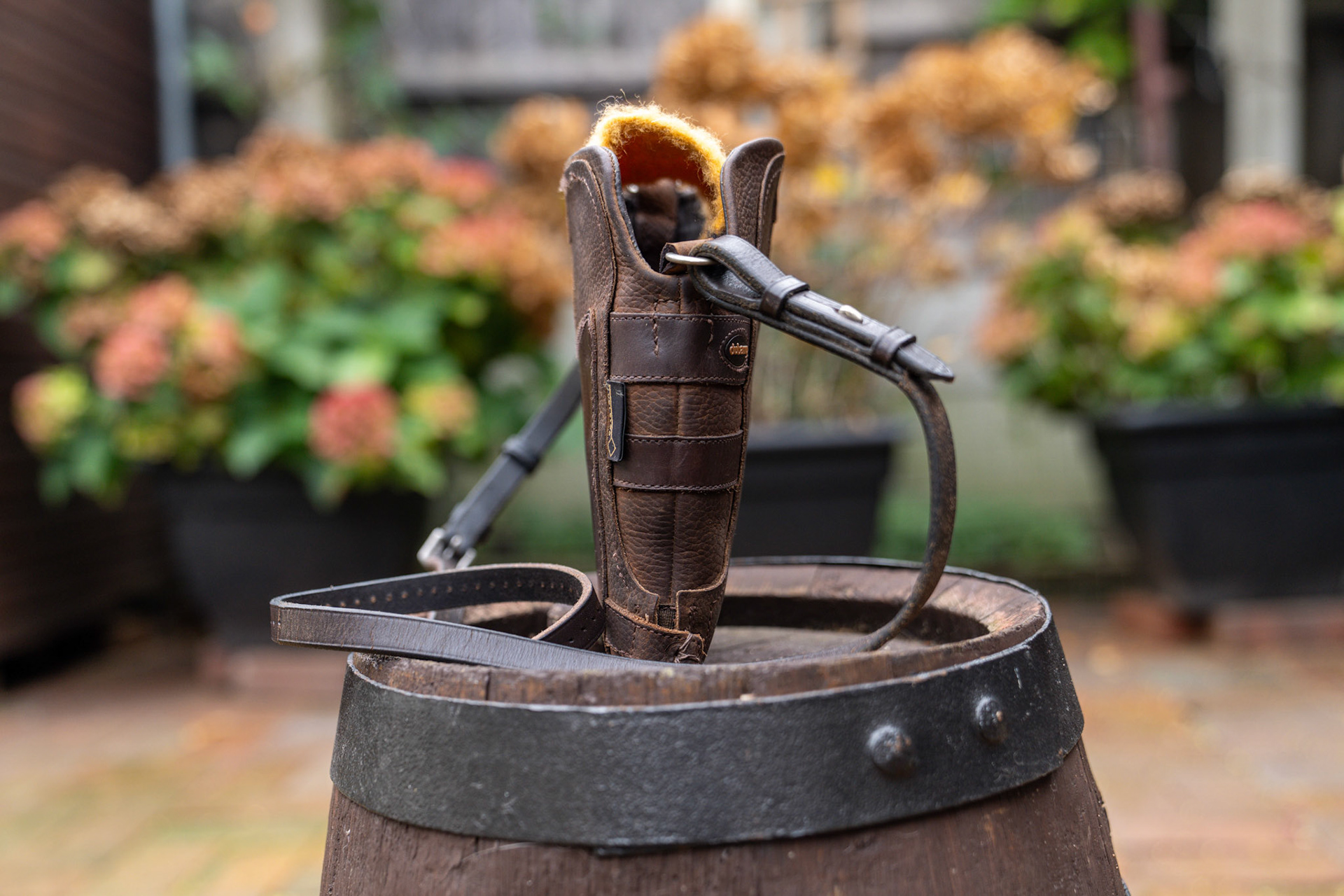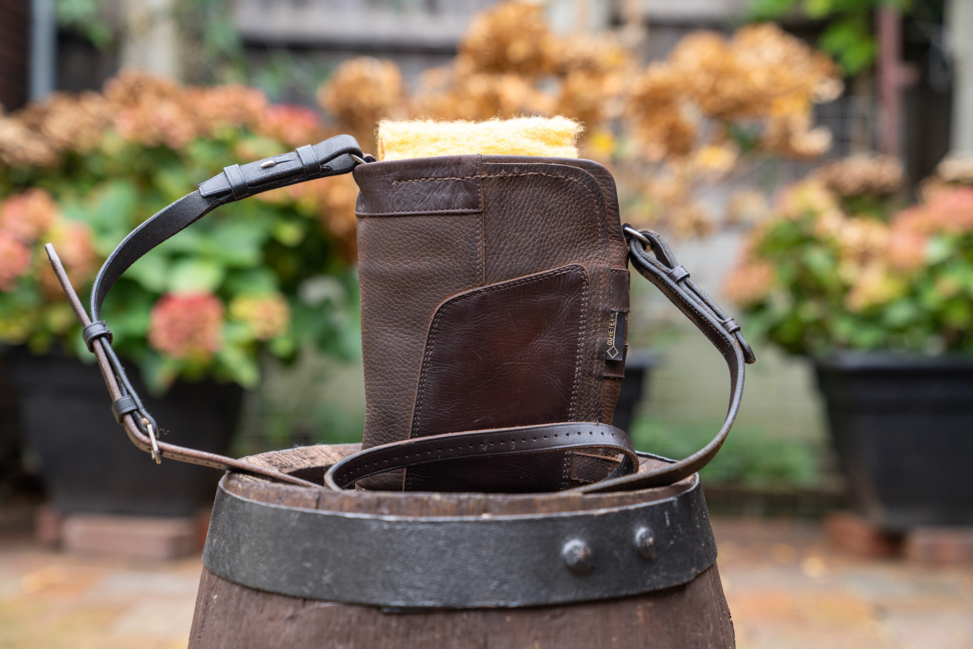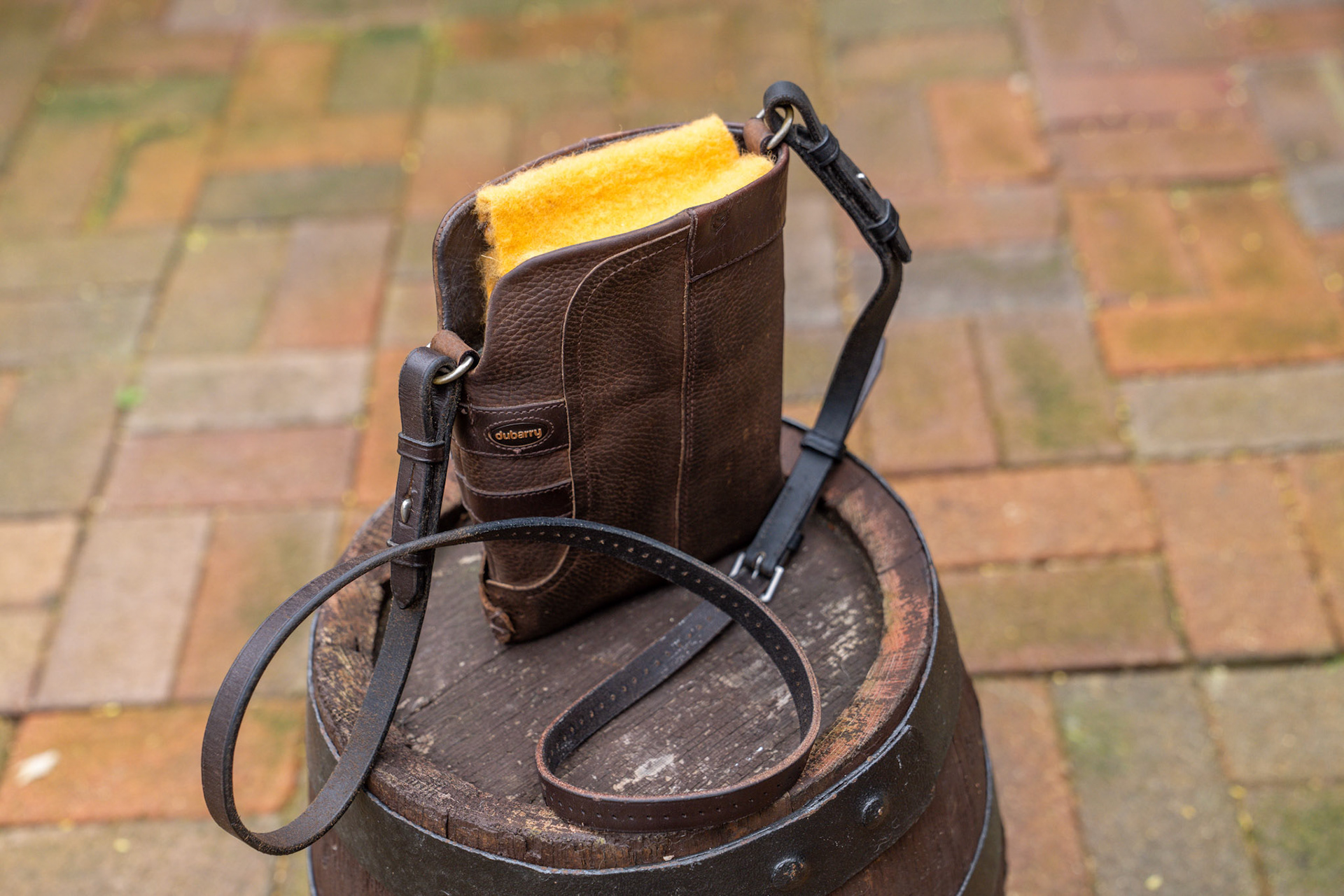 Fabulous Chocolate Brown little boot bag with a rein strap and a pure wool Whitney privacy flap.