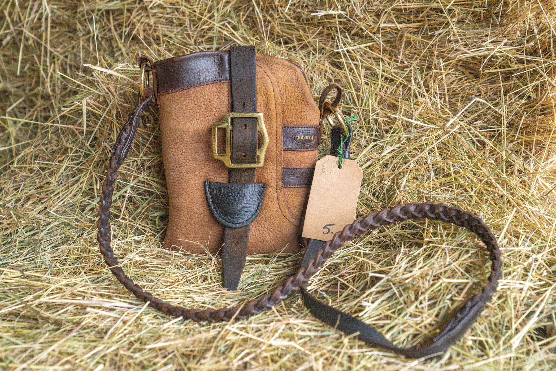 This boot bag has it all: the brass, the closure, and the plaited rein shoulder/cross-body strap. It will also come with a personalised padded key fob of your chosen initial.